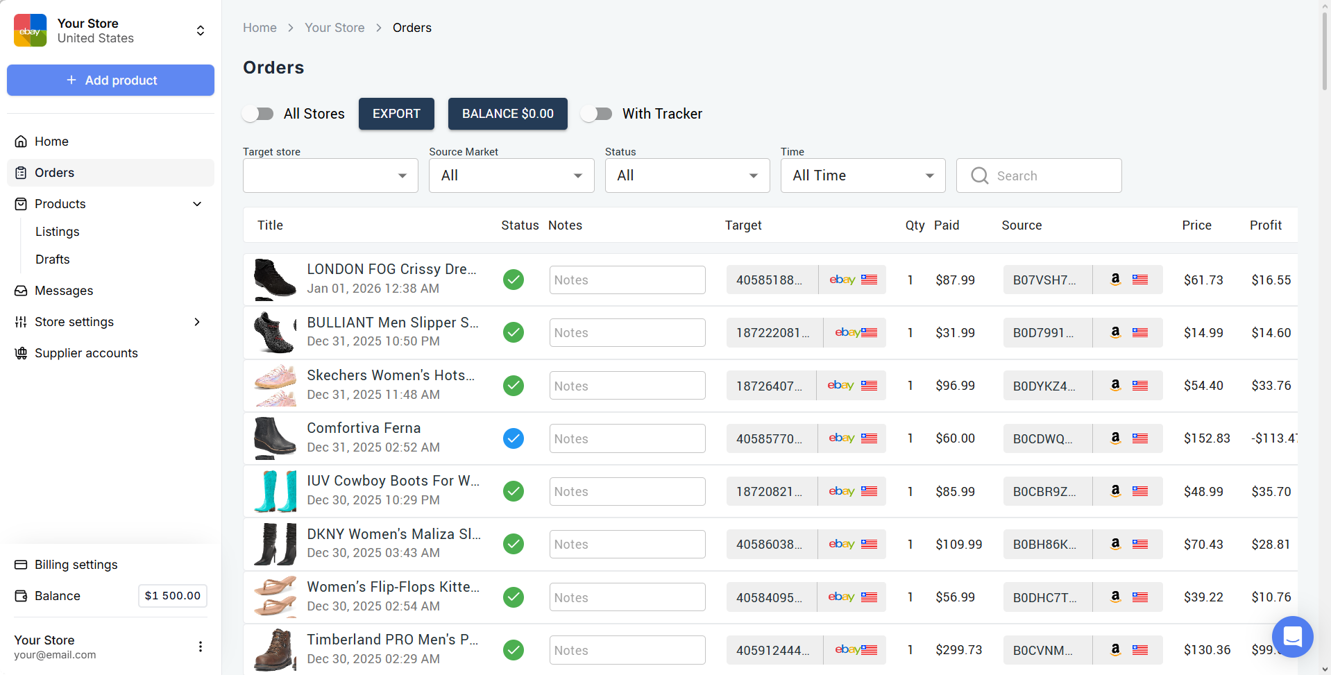 Find reliable dropshipping suppliers, track quantities, and manage order processing – all from one platform.