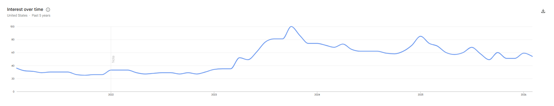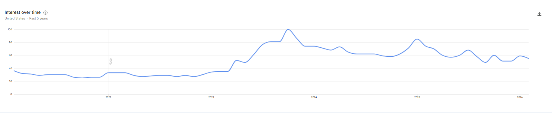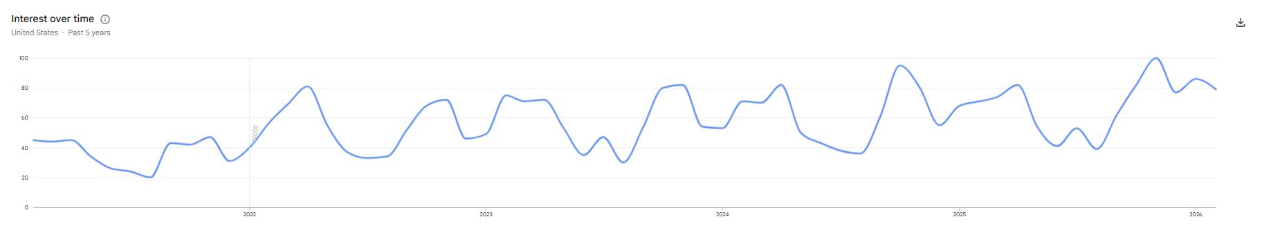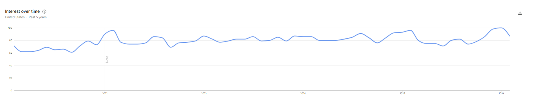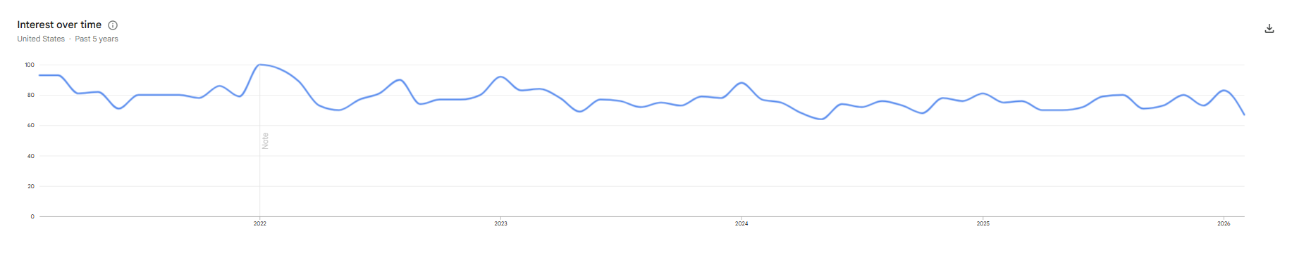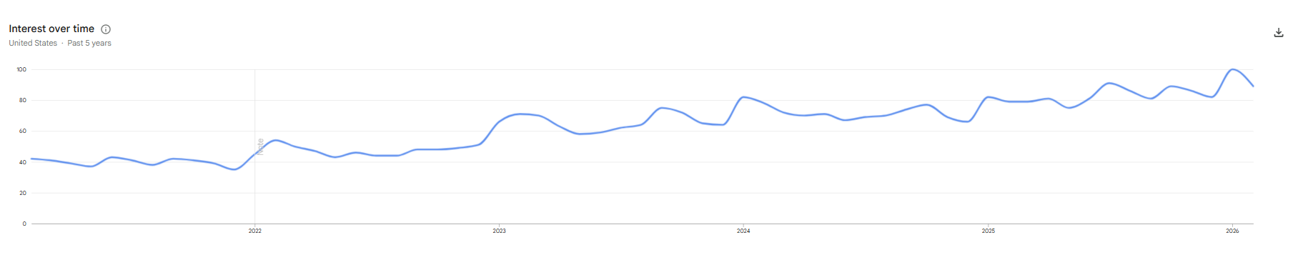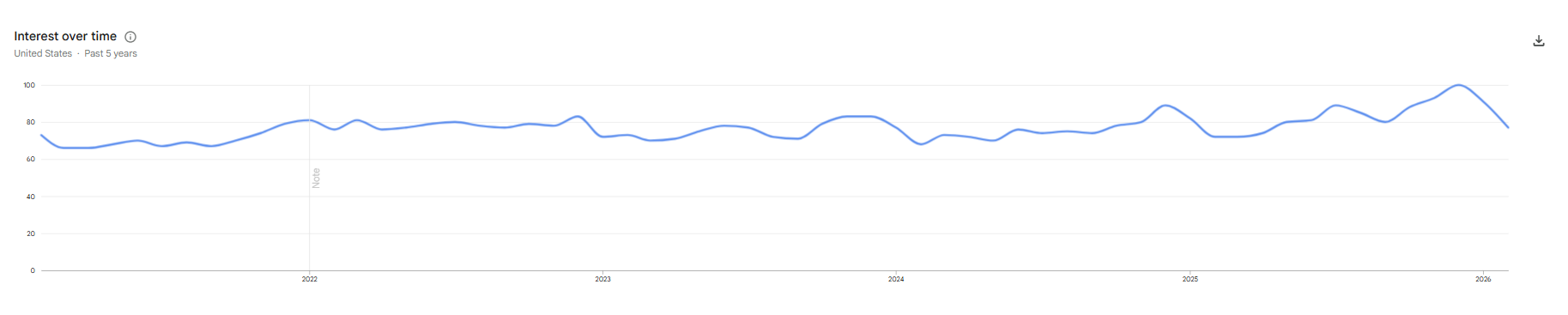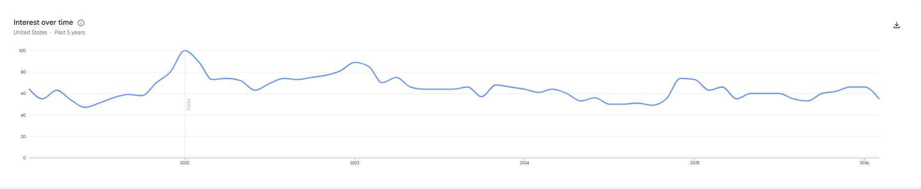 Discreet, repeat-purchase wellness product with stable five-year search demand and low brand-switching friction.