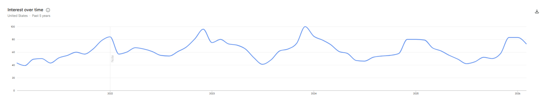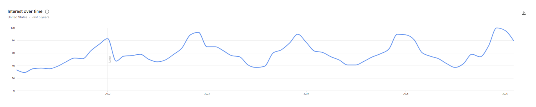 Men’s skincare is moving mainstream. Interest in men’s face moisturizer has spiked in the short term, with strong long-term growth as more men build simple routines.