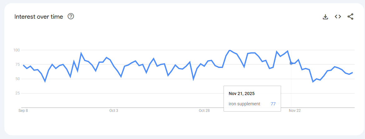 Trend “Iron supplement” maintains strong year-round interest with regular peaks.